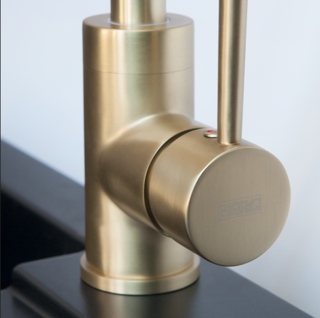 Luksusowy jasny złoty odcień dodaje elegancji i doskonale komponuje się z marmurowymi blatami oraz ciepłymi tonami wnętrza.