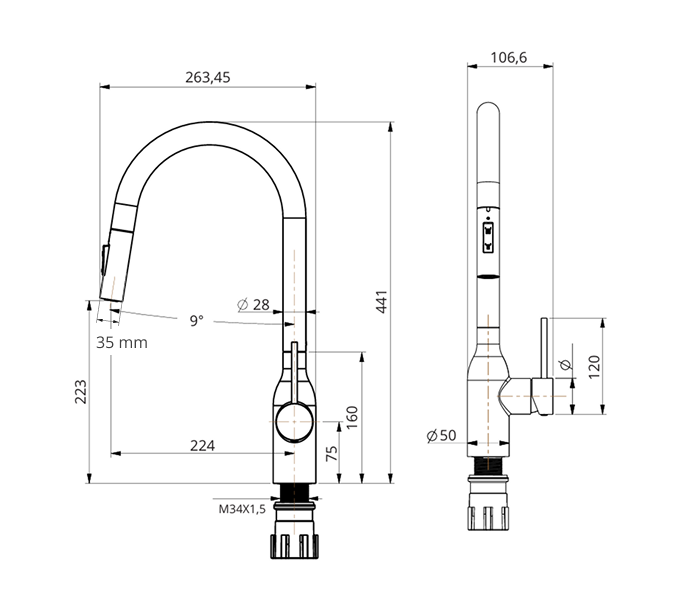 Wyciągane ramię baterii zwiększa komfort codziennych prac kuchennych. Ułatwia napełnianie dużych garnków oraz mycie dużych naczyń.