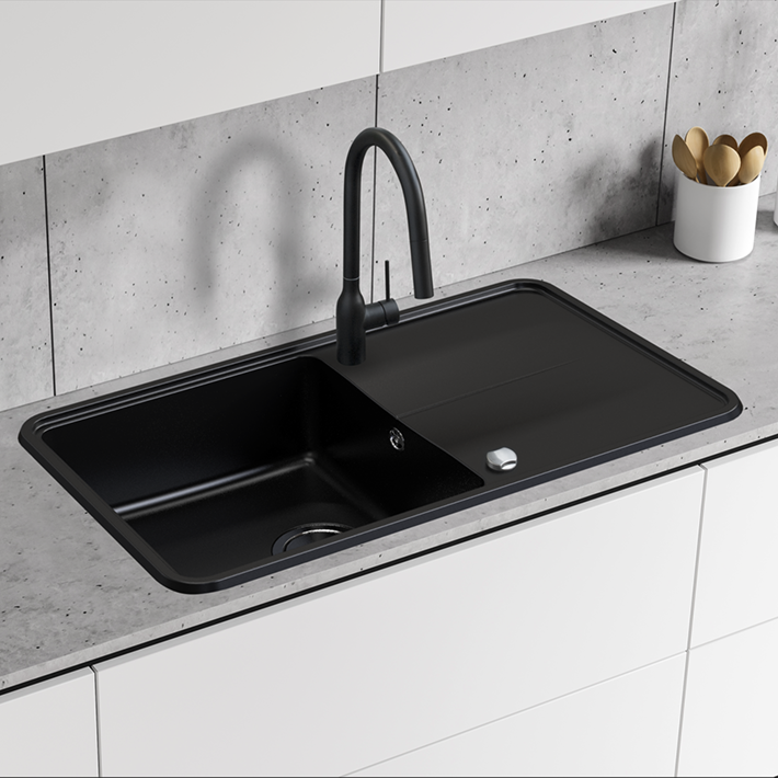 Nowoczesna, matowa czerń podkreśla minimalistyczny styl i świetnie współgra z industrialnymi aranżacjami kuchni.