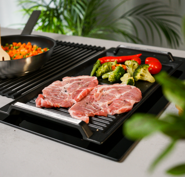 Funkcja BBQ w płycie indukcyjnej to idealne rozwiązanie dla miłośników grillowania – zapewnia równomierne, wysokie ciepło na całej powierzchni strefy grzewczej, umożliwiając smażenie i grillowanie bez dymu i tłuszczu rozbryzgującego się po kuchni.
