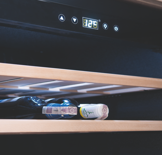 Prowadnice teleskopowe w winiarce BRGSW18 zapewniają płynne i ciche wysuwanie nawet w pełni załadowanych półek, umożliwiając wygodny dostęp do każdej butelki bez konieczności schylania się lub niepotrzebnego manipulowania pozostałym winem. Dzięki 2 półkom zamontowanym na tym systemie, użytkownik zyskuje nie tylko ergonomię, ale także pełną kontrolę nad kolekcją, łatwo organizując butelki i utrzymując porządek. To połączenie funkcjonalności i elegancji sprawia, że przechowywanie wina staje się intuicyjne i satysfakcjonujące, a drewniane półki dodatkowo podkreślają naturalny charakter przechowywanych trunków.
