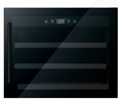 Szklane drzwi w kolorze czarnym dodają winiarce elegancji, a jednocześnie umożliwiają podziwianie zawartości. Wysokość szklanego frontu sprawia, że winiarka świetnie komponuje się w zabudowie kuchennej.