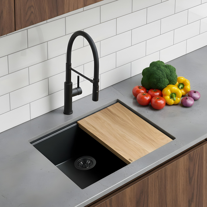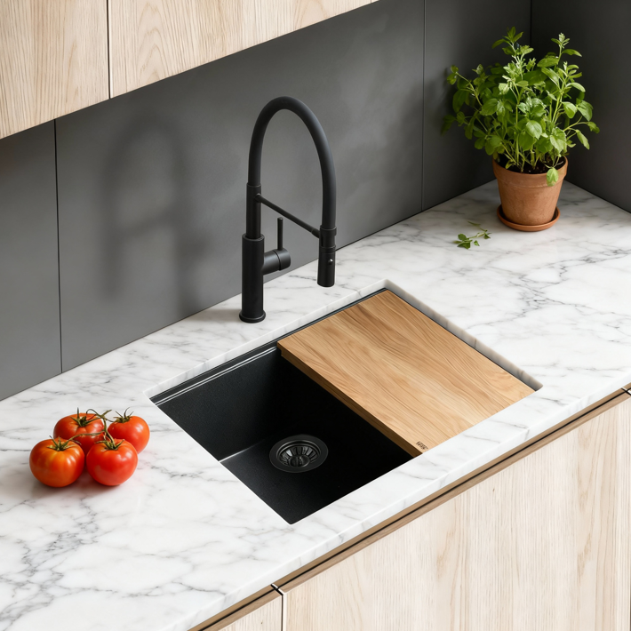 Dzięki zastosowaniu mikrocząsteczek granitu w procesie produkcyjnym, powierzchnia zlewozmywaka zyskuje wyjątkową twardość i odporność na typowe kuchenne wyzwania. To połączenie naturalnej wytrzymałości granitu z precyzją inżynierii materiałowej sprawia, że zlew jest praktycznie niezniszczalny w codziennej eksploatacji, stanowiąc idealne rozwiązanie nawet dla najbardziej wymagających kuchni.