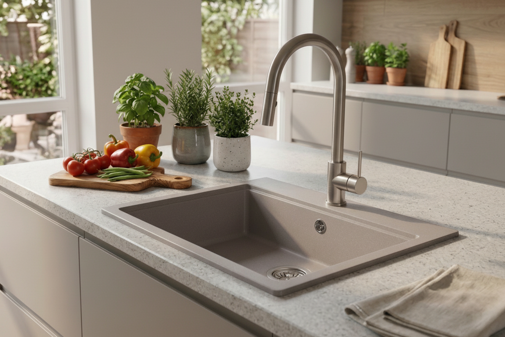 Inwestując w zlewozmywak granitowy, zyskujesz pewność, że jego elegancki, matowy kolor pozostanie nienaruszony przez długie lata – niezależnie od częstotliwości użytkowania.