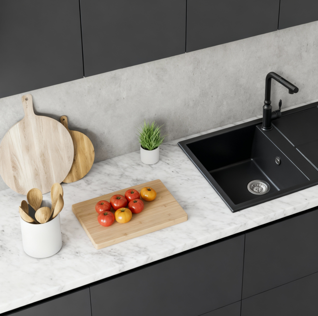 To nie jest zwykła czerń – to idealna, głęboka czerń, która pochłania światło i nadaje przestrzeni wyrafinowany, nowoczesny charakter. Kolor czarny bazalt łączy w sobie intensywność z elegancją, tworząc uniwersalny wybór, który komponuje się zarówno z minimalistycznymi, jak i industrialnymi aranżacjami. Jego matowa, gładka powierzchnia nie tylko maskuje ewentualne ślady palców i zacieków, ale także podkreśla prestiżowy charakter wnętrza. To kolor, który nie dominuje, a jedynie dopełnia – dodając kuchni tajemniczości i klasy.