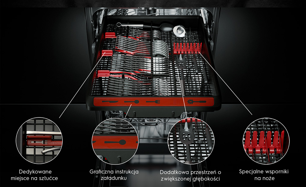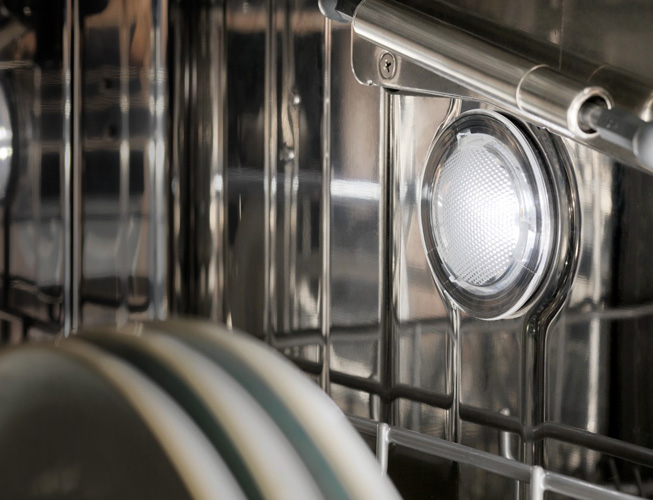 Automatyczne oświetlenie wnętrza pozwoli Ci komfortowo wkładać i wyjmować naczynia, niezależnie od pory dnia lub nocy. Dzieki temu już nigdy nie przeoczysz żadnej rzeczy!