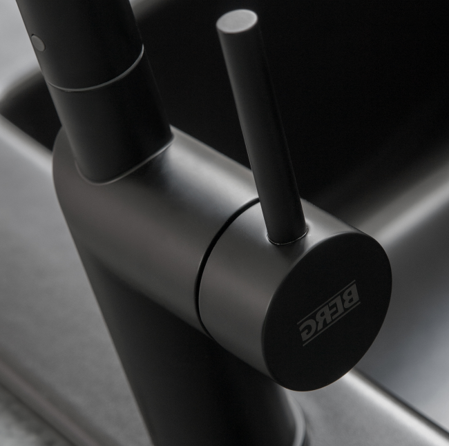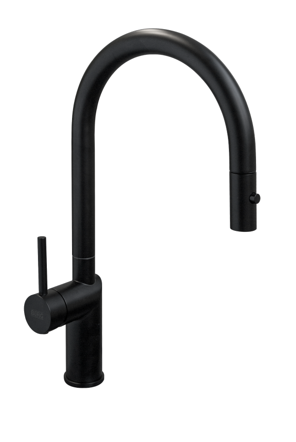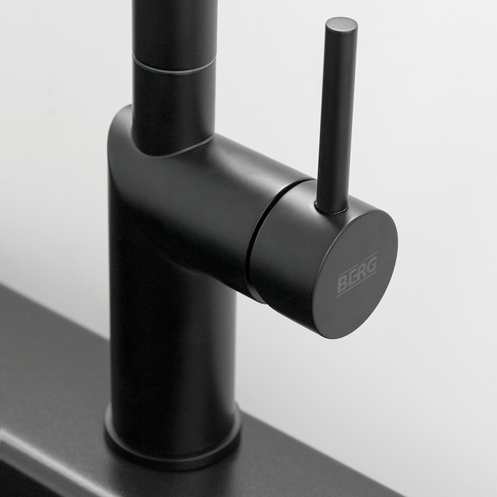 Bateria zlewozmywakowa BERG MILO WWP w eleganckim czarnym macie łączy minimalistyczny design z praktycznymi funkcjami. Wyposażona w wyciąganą wylewkę z funkcją prysznica, ceramiczną głowicę 35 mm oraz system Easy Fix, zapewnia wygodę użytkowania i szybki montaż. Jej zasięg 262 mm i wysokość 428 mm sprawiają, że doskonale sprawdzi się zarówno w nowoczesnych, jak i klasycznych kuchniach.