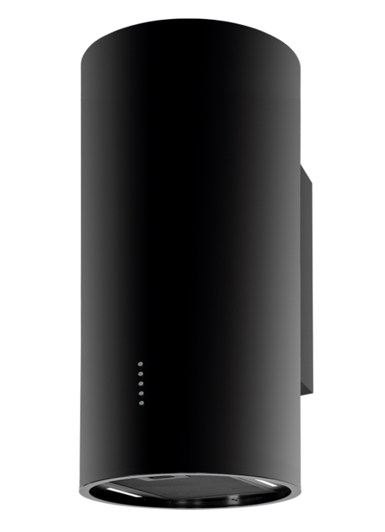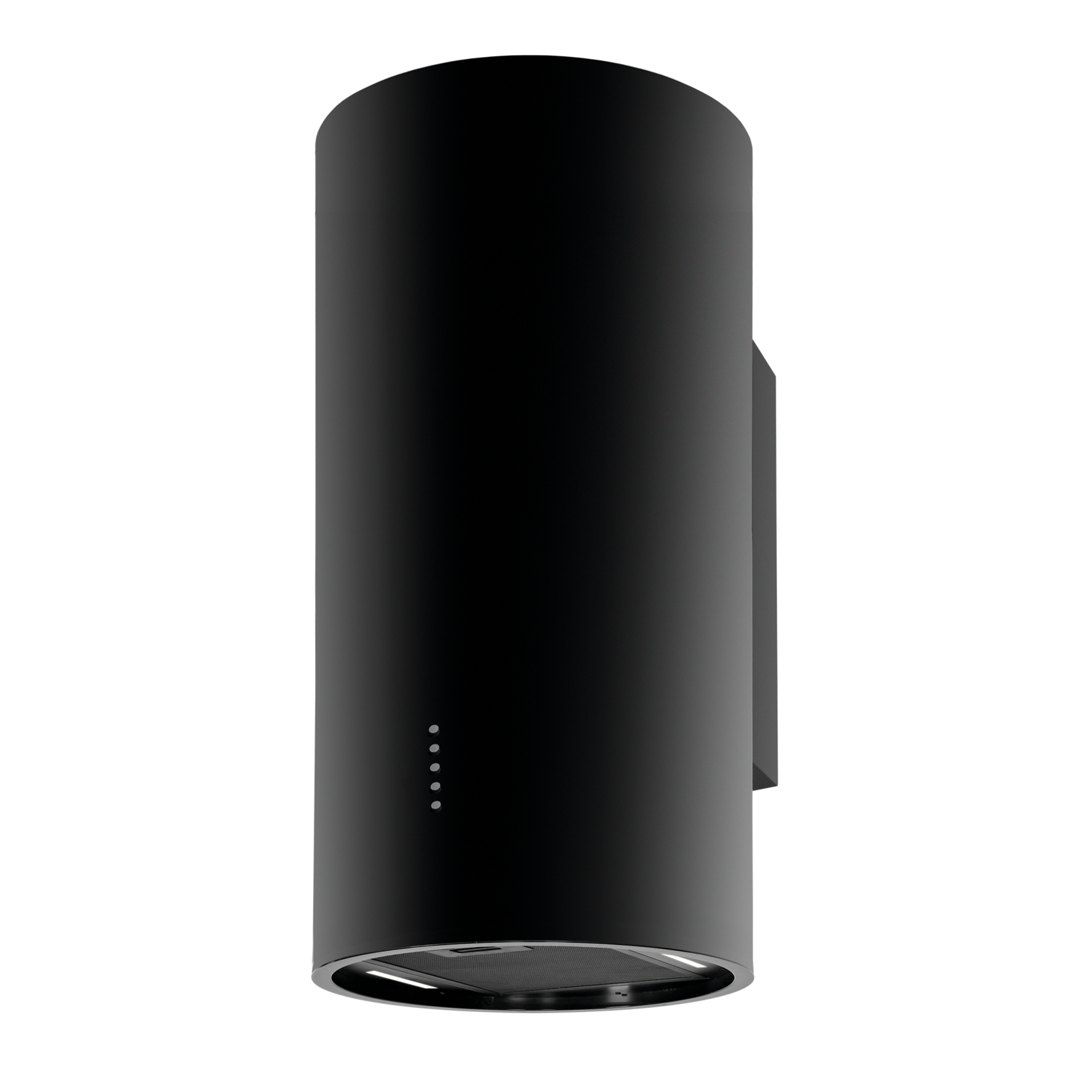 Elegancki i nowoczesny wygląd okapu, zdominowany przez głęboką czerń szklanego frontu i cylindryczny kształt idealnie komponuje się z każdym stylem kuchennym – od minimalistycznych wnętrz po industrialne aranżacje.