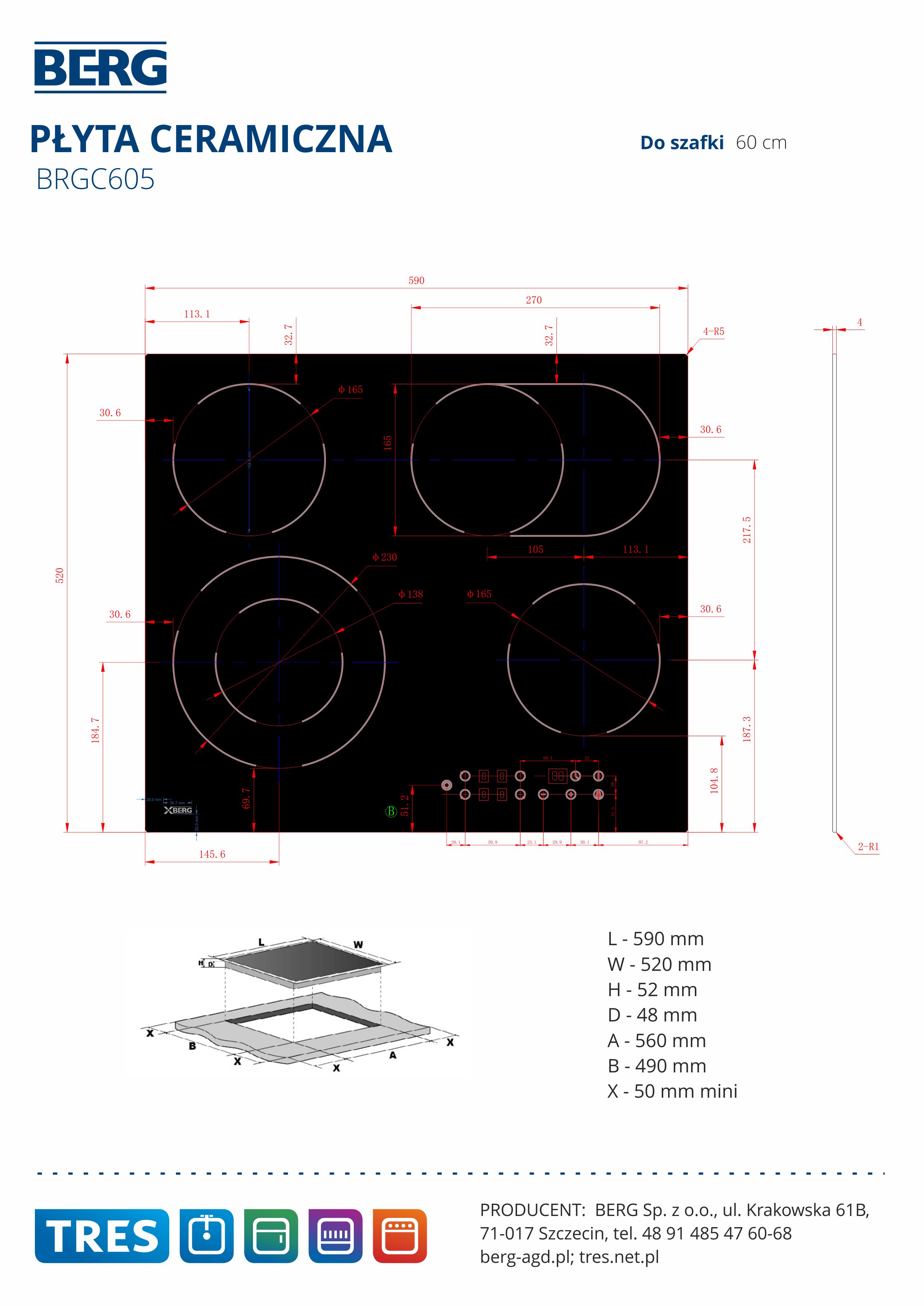 Dzięki połączeniu dużej powierzchni roboczej, zaawansowanych funkcji oraz estetycznego wykonania, BERG BRGC605 to idealne rozwiązanie dla osób, które oczekują od płyty ceramicznej zarówno wygody, jak i niezawodności.