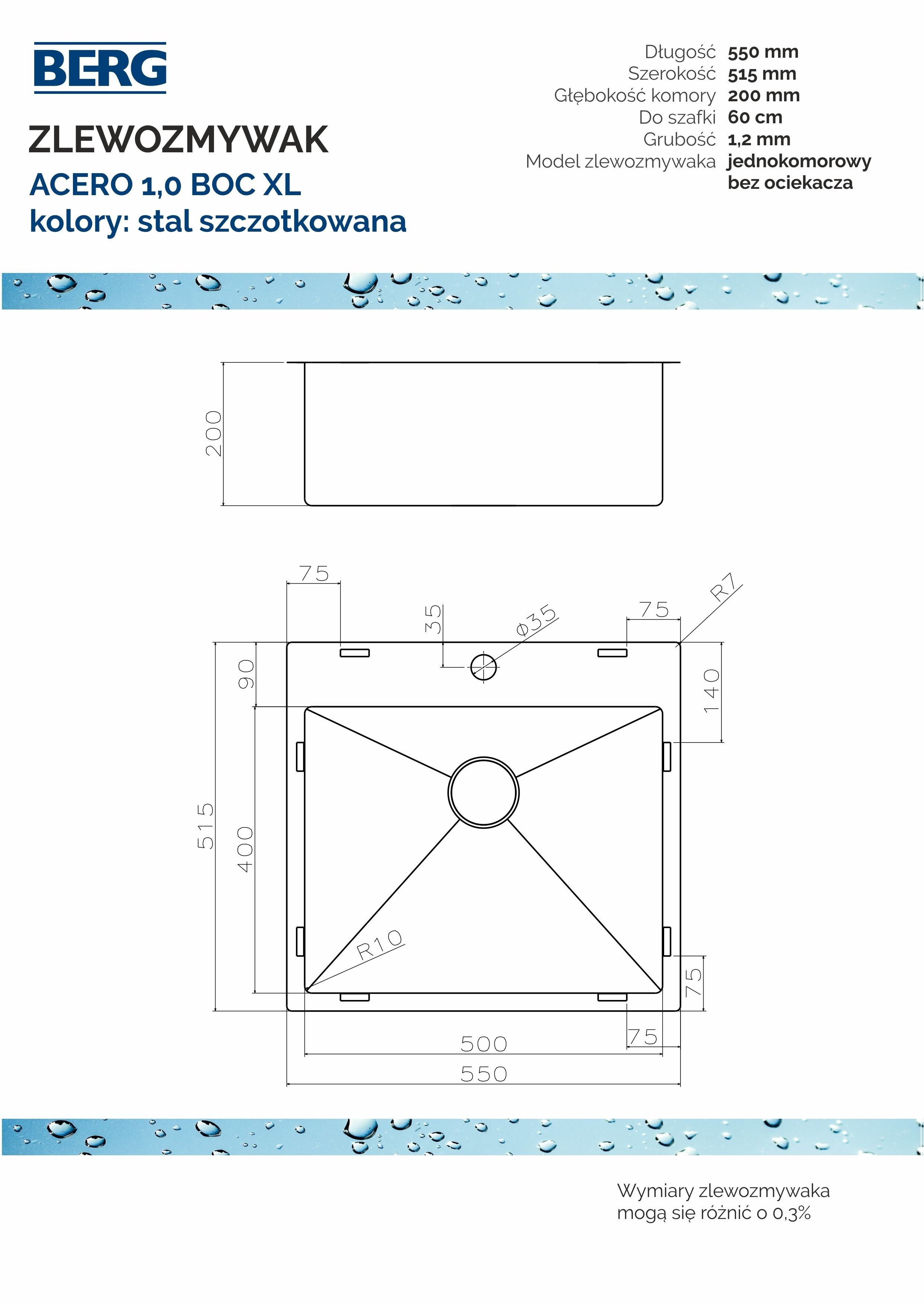ZESTAW ZLEWOZMYWAK STALOWY BERG ACEROXL + DESKA TKT36