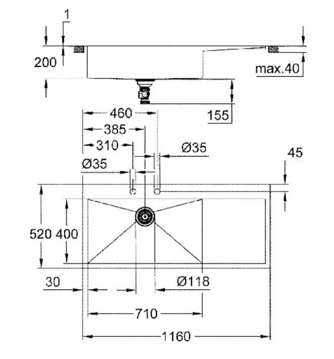 GROHE ZLEWOZMYWAK K1000 SINK 80 -S 116/52 1.0 LH 31581SD1