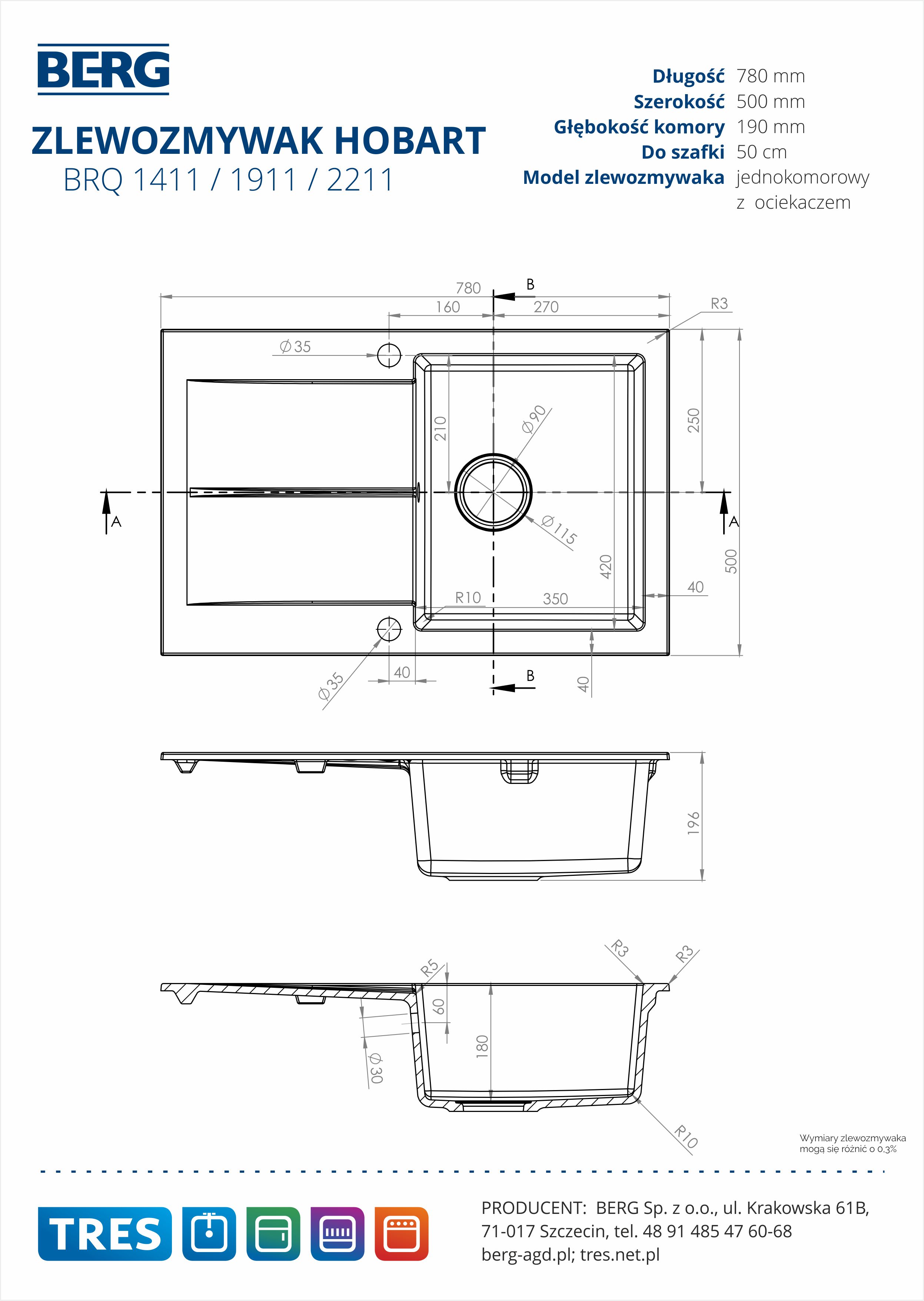 MOŻLIWOŚĆ OBRÓCENIA ZLEWO