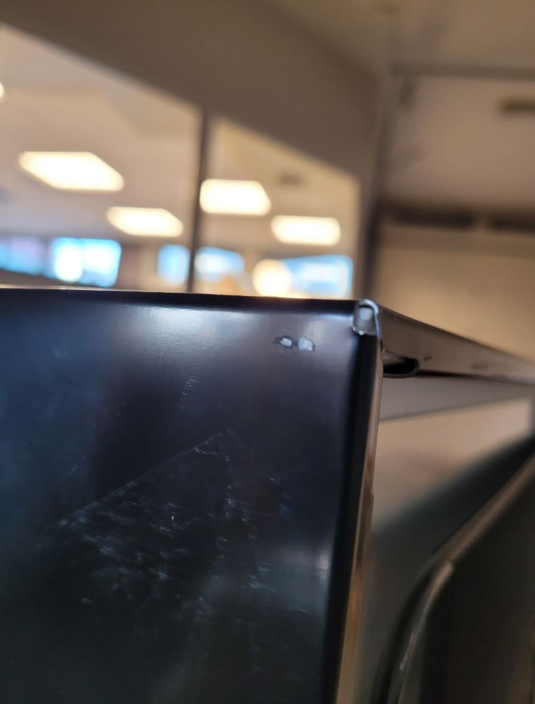 TOWAR POSIADA RYSY ORAZ ŚLADY KLEJU MIĘDZY DRZWIAMI A KORPUSEM (GÓRNA CZĘŚĆ).
