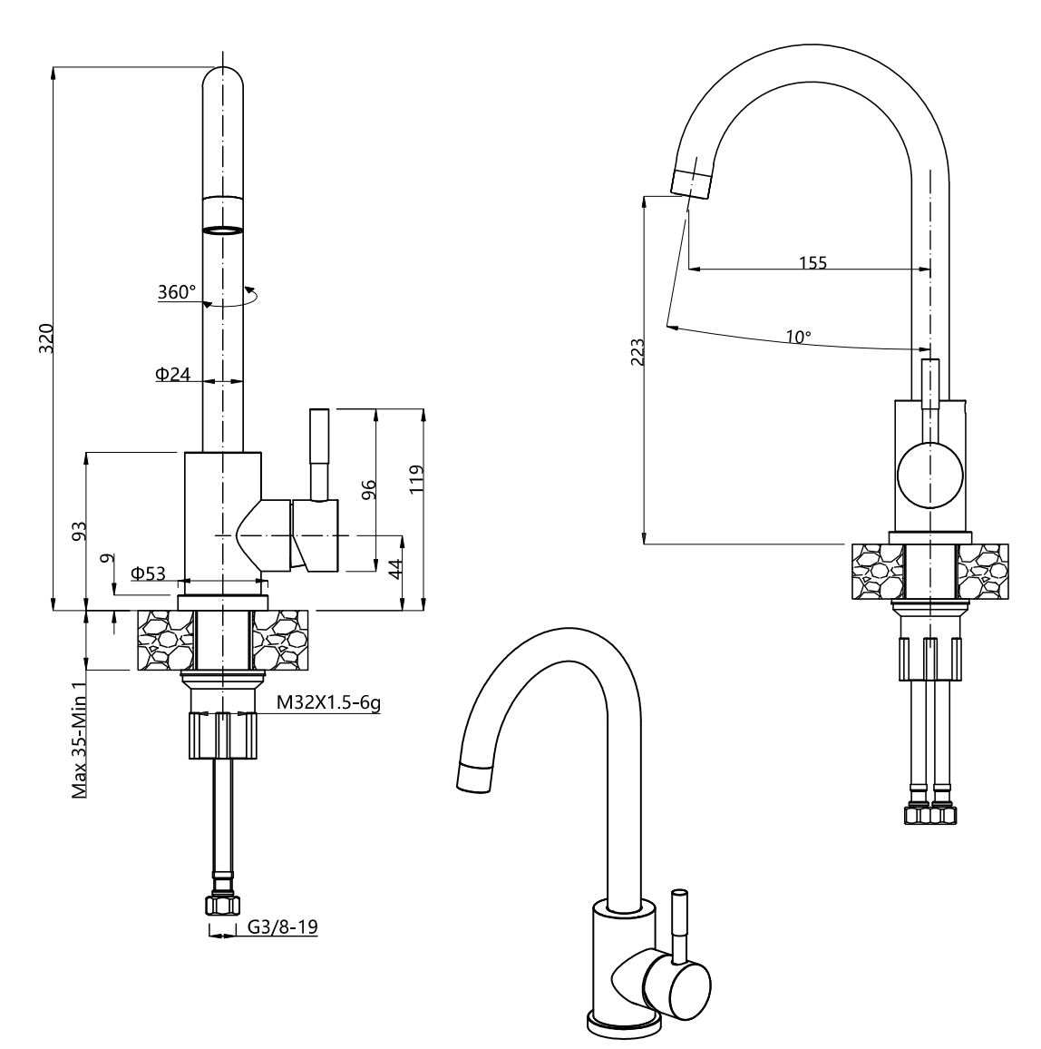 – wysokość od blatu 320 mm