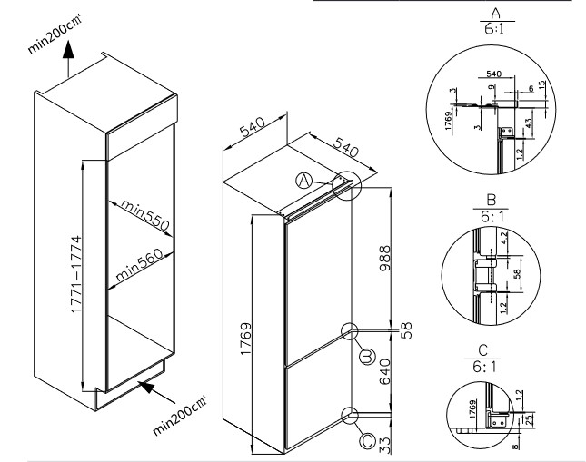 Głębokość netto 540 mm